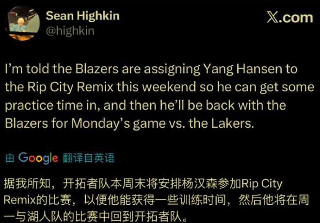原本以為,楊瀚森此次被下放到發展聯盟會待一段時間,什么時候能重返開拓者隊不一定,但是這其實只是虛驚一場。根據開拓者隊隨隊記者的爆料,他說楊瀚森只是暫別開拓者隊兩天而已,等到4日11點開拓者隊主場再戰湖人隊,大家就又可以看到楊瀚森了。